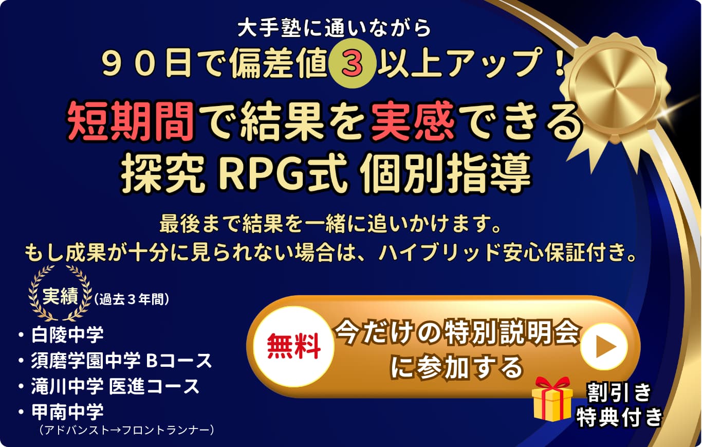 このような研究結果をもとに、探究RPG式個別指導では、ただ問題を解くだけの学習ではなく、教育心理学や認知科学の知見を取り入れた、好きの力で成績とやる気を伸ばす「RPG式得点アッププログラム」を活用して、得点力+本物学力+人間力を育み、結果を残しています。