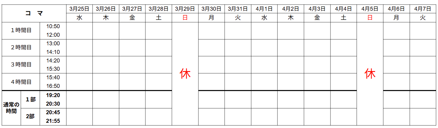 3月25日(水)~4月7日(火)